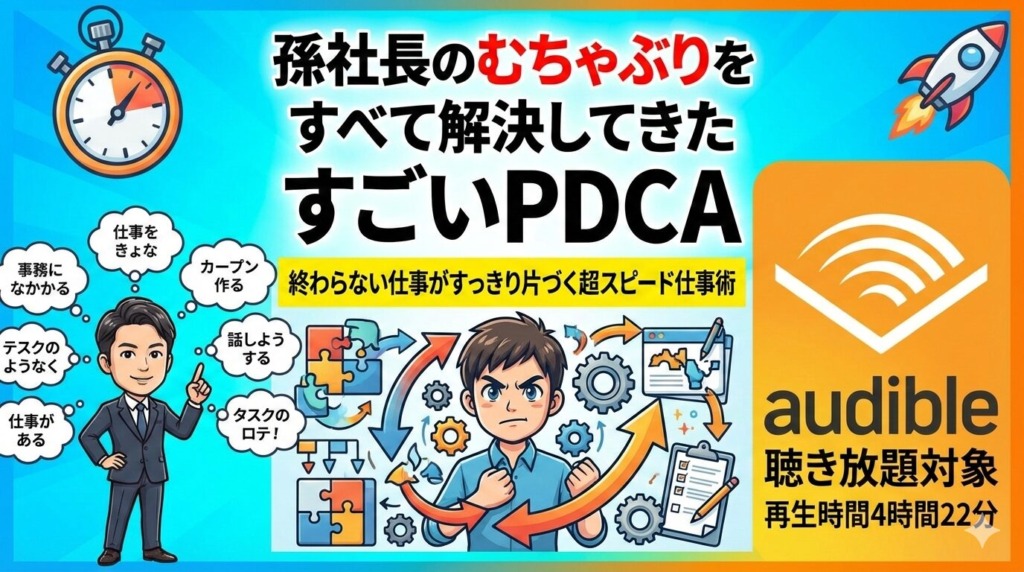 【『孫社長のむちゃぶりをすべて解決してきた すごいPDCA』はAudibleで聴ける?【聴き放題対象・再生時間4時間22分】】『孫社長のむちゃぶりをすべて解決してきた すごいPDCA――終わらない仕事がすっきり片づく超スピード仕事術』は、Audible聴き放題の対象... -