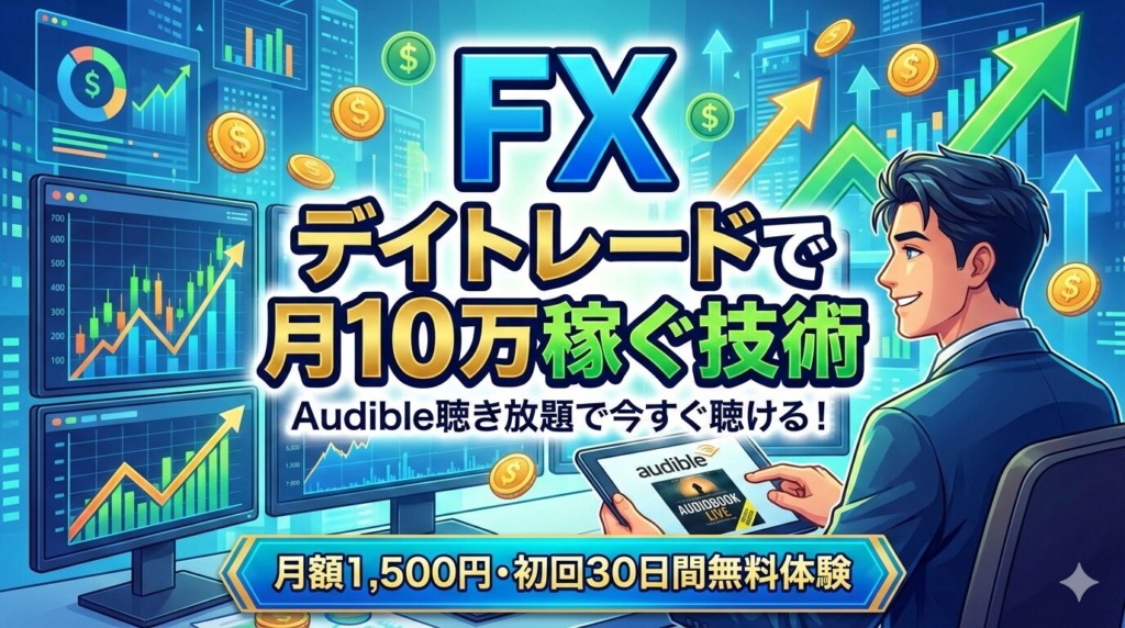 『FX デイトレードで月10万稼ぐ技術』はAudibleで聴ける?聴き放題の配信状況・口コミ・お得な聴き方まとめ【2026年最新】