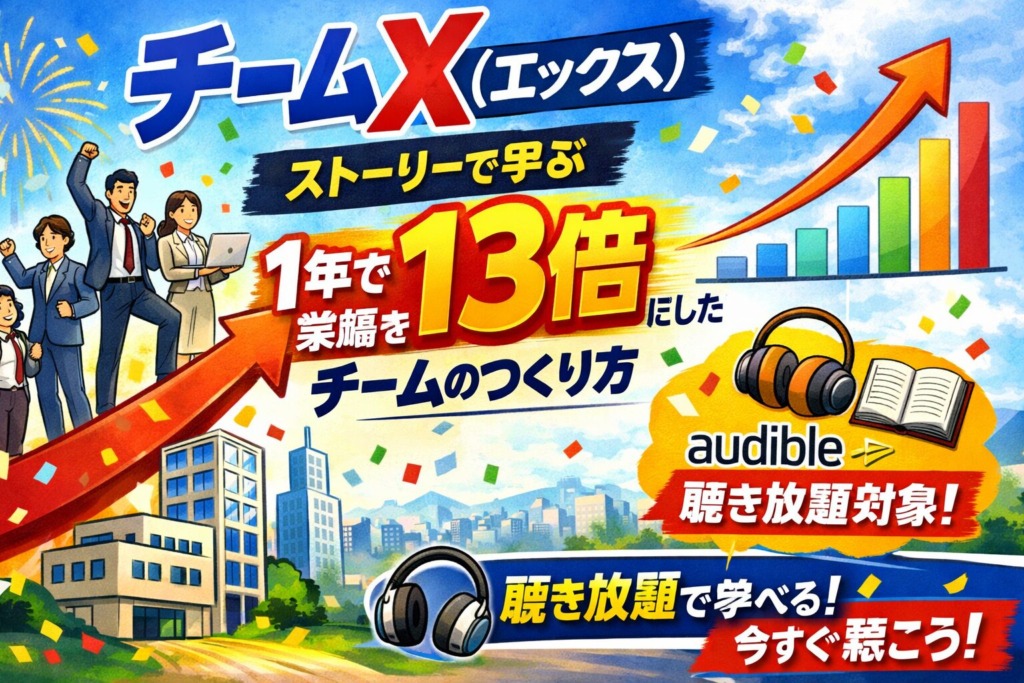 木下勝寿氏の『チームX(エックス) ── ストーリーで学ぶ1年で業績を13倍にしたチームのつくり方』は、Audible聴き放題の対象作品です。月額1,500円(税込)のAudible会員なら追加料金なしで全編を聴くことができ、初回30日間の無料体験中にも利用可能です... -