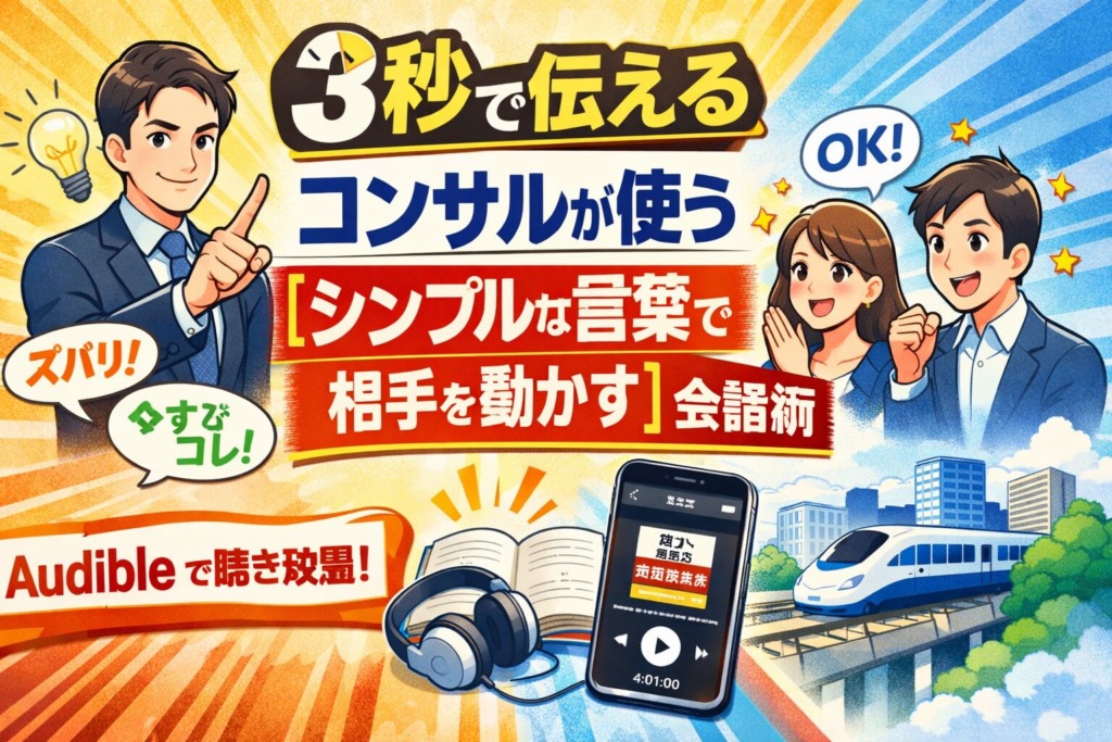「3秒で伝える コンサルが使う[シンプルな言葉で相手を動かす]会話術」は、Audible聴き放題の対象作品です。再生時間4時間1分で、通勤や移動中にサクッと1冊聴き切れます。本記事では、本書の要約・口コミ・Audibleで聴くメリットまで徹底解説します。【... -
