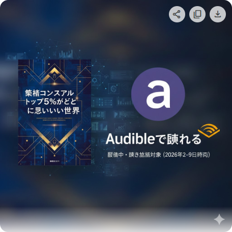 Audible版のナレーターは橋本英樹氏が担当しています。橋本氏はAudibleで40作品以上のナレーションを手がけるプロナレーターで、『経営戦略全史』(三谷宏治)、『新宿鮫シリーズ』(大沢在昌)、『センスの哲学』(千葉雅也)、『機龍警察シリーズ』(月村了衛)など、ビジネス書から小説まで幅広いジャンルを担当しています。
