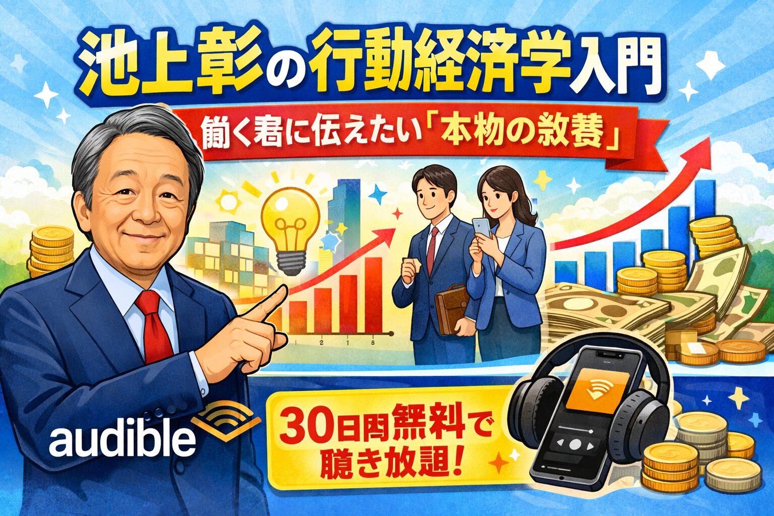 Audibleの初回30日間無料体験を利用すれば、期間中は聴き放題対象作品をすべて無料で聴けます。本書も対象なので、無料体験だけで全編を聴くことが可能です。無料体験期間中に解約すれば料金は一切かかりません。