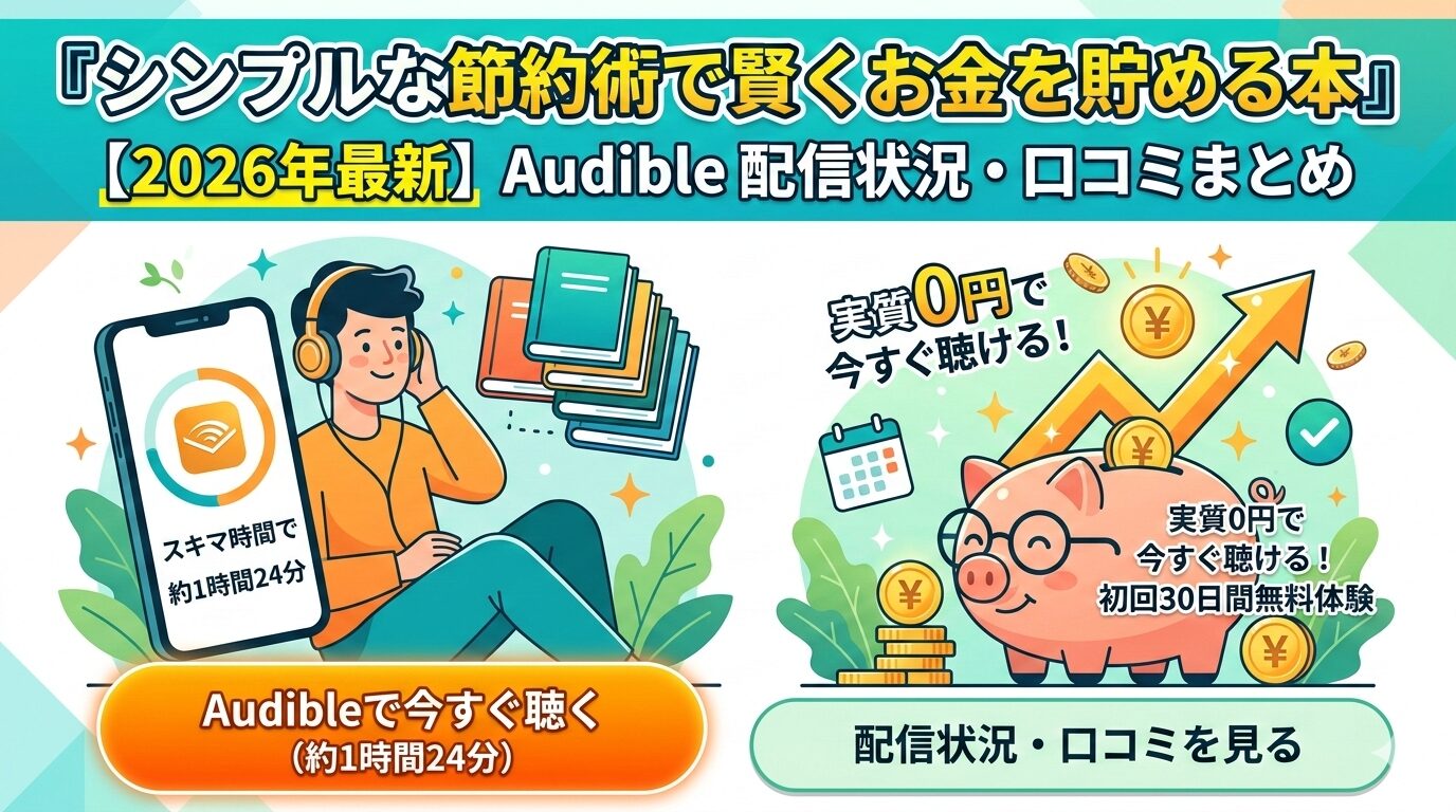 『シンプルな節約術で賢くお金を貯める本』はAudibleで聴ける?配信状況・口コミ・お得な聴き方まとめ【2026年最新】