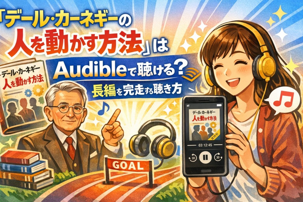 デール・カーネギーの人を動かす方法』はAudibleで聴けます。再生時間は約10時間35分。挫折しない失敗しない聴き方、向いている人、要点を定着させるコツを解説します。 最終確認日:2026-01-07