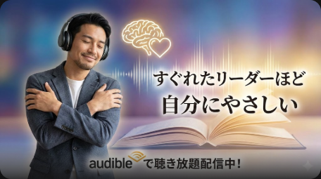 『すぐれたリーダーほど自分にやさしい』はAudible聴き放題対象。再生時間5時間1分、ナレーターは岡本昇氏。セルフコンパッションの実践法を学べるビジネス書を30日間無料体験で聴く方法を解説。 -