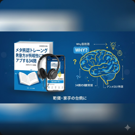 『メタ思考トレーニング 発想力が飛躍的にアップする34問』のAudible配信状況を解説。聴き放題対象で再生時間3時間50分。細谷功氏のWhy型思考・アナロジー思考を34問で実践的に学べます。 -